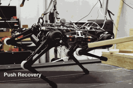 Cheetah 3可以不靠視覺地爬上樓梯以及通過非結(jié)構(gòu)化地形,并能在面對巨大力量的時候迅速恢復(fù)其平衡,這都得益于研發(fā)團隊開發(fā)的兩個新算法:接觸檢測算法和模型預(yù)測控制算法。接觸檢測算法有助于機器人確定它的腿從空中擺動到踏到地上的最佳時間。模型預(yù)測控制算法會預(yù)測一旦給定一個行為步驟,它應(yīng)該施加多少力。