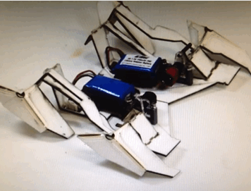 一旦電源開始供電,微控制器就會經(jīng)過一系列操作對銅質折印進行加熱,然后四足便折疊形成。折疊完成后電動機轉動齒輪,機器人便可行走。如果集成適當?shù)碾娐烦绦?,機器人也可以完成轉彎。