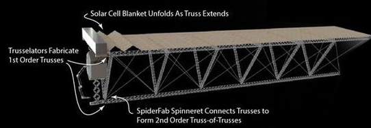 但若能在軌道上直接建造飛船構(gòu)件,通過火箭升空的就只需蜘蛛機(jī)器人以及原始建材,即通過較小、較便宜的運(yùn)載火箭實(shí)現(xiàn)緊湊的運(yùn)輸,進(jìn)而在太空中直接打造出比原來大數(shù)十倍至數(shù)百倍的太陽能電池板或天線,從而讓各種太空任務(wù)實(shí)現(xiàn)更高的功率、帶寬、分辨率和靈敏度。