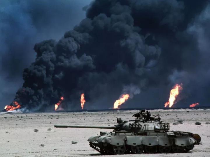 1990年第一次海灣戰(zhàn)爭(zhēng)爆發(fā),薩達(dá)姆在失敗絕望中的最后一刻,下令點(diǎn)燃伊拉克境內(nèi)700多口油井。一時(shí)間火光沖天,煙塵遮天蔽日!