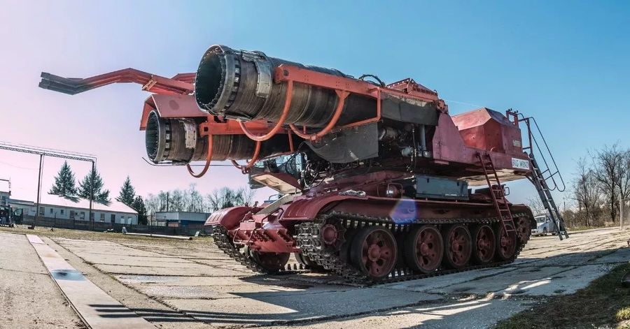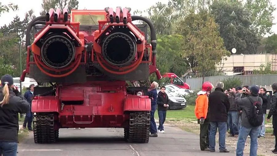 為平衡噴氣引擎帶來的巨大后坐力,整車重量被加到了46噸!車外部還加裝了90毫米的鋼板,以抵御烈火的高溫。