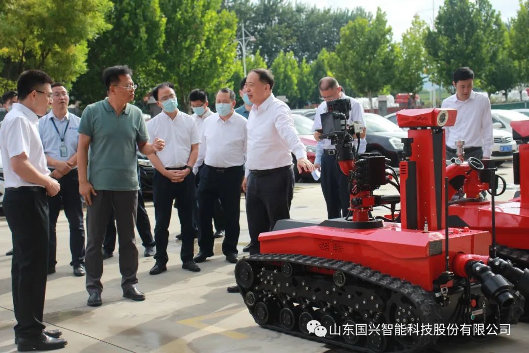 8月30日下午,煙臺市副市長韓耀東、煙臺市消防救援支隊政委李飛等在煙臺開發(fā)區(qū)管委會科技副主任陳軍陪同下到山東國興智能科技股份有限公司考察指導。